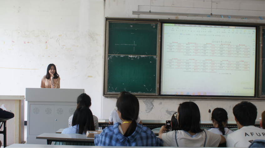 本次大会主要分为三个部分,第一个部分由两委会副主席陈俊宏发言,他讲述的主要内容是运动会期间的值班安排和各部门干事主要负责的运动员,强调大家要紧密配合,为运动员服务;第二部分由两委会副主席真优雅发言,她讲述内容为希望两委会各部门成员之间能增进交流、以便更好促进彼此之间的感情,两委会永远是一家人;第三部分由两委会团委副书记郭震发言,他主要补充副主席陈俊宏的安排内容,让各部门更加清楚运动会期间如何更好完成工作。