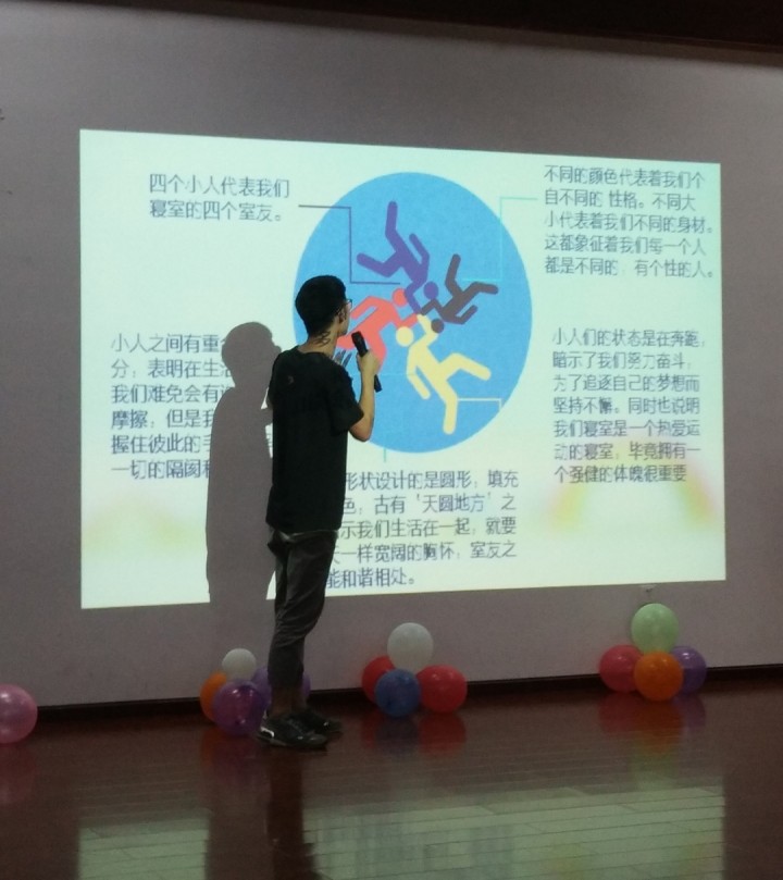 本次大赛共有15支队伍进入了决赛,决赛内容包括PPT讲解、才艺展示进行打分。PPT主要介绍寝室logo设计的思路和寝室文化建设的创意,最终将会由评委进行打分。