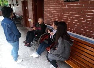 经过几十分钟的车程,志愿者们终于到达我们的目的地,在看到老人的时候志愿者们都很开心积极。活动开展中,有的志愿者陪老人散步,有的志愿者给老人表演节目:唱歌、跳舞。大部分志愿者与老人进行心与心之间的聊天。老人们以过来人的身份给我们说着当下的时事以及在他们身上经历的故事,老人们毕竟是经历过几十年风雨的人。其中有一位老奶奶以前是上过大学的医生,她告诉我们要努力学习才能改变生活。