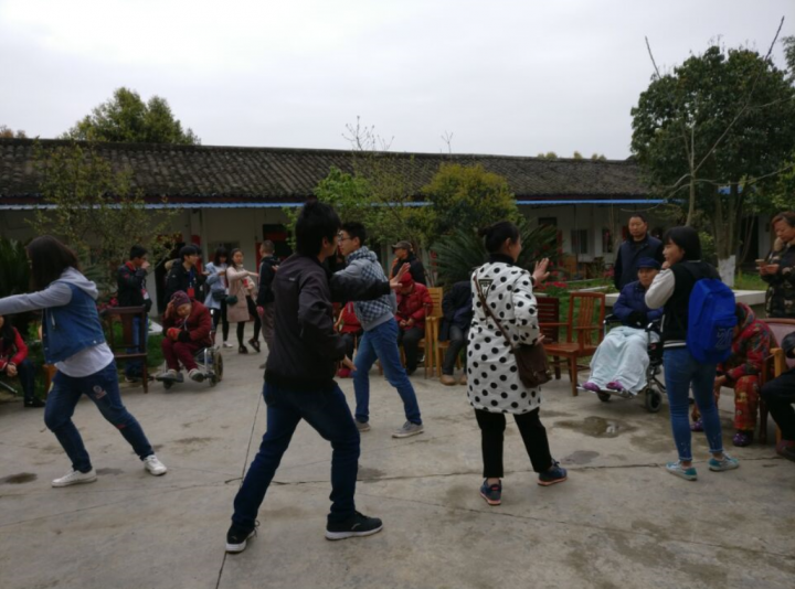 与此同时有的志愿者拾起锄头、有的徒手去院后满布砖石的地里开垦。活动最后我们为老人们表演了几个节目,有唱歌、跳舞、太极等等。活动以一片热烈的掌声收场,将老人们扶会房后,我们依依不舍纷纷挥手道别。