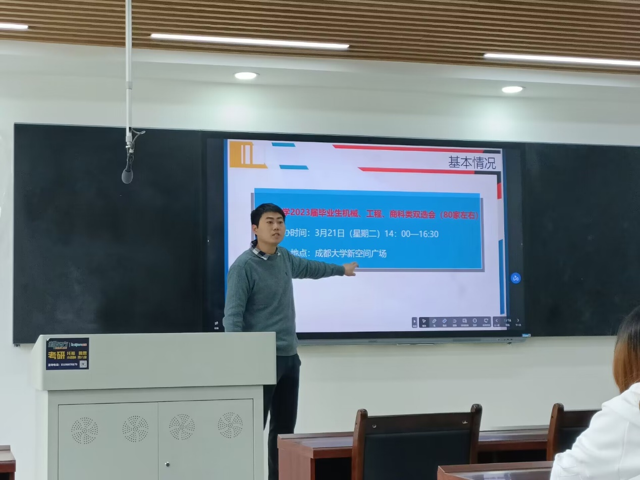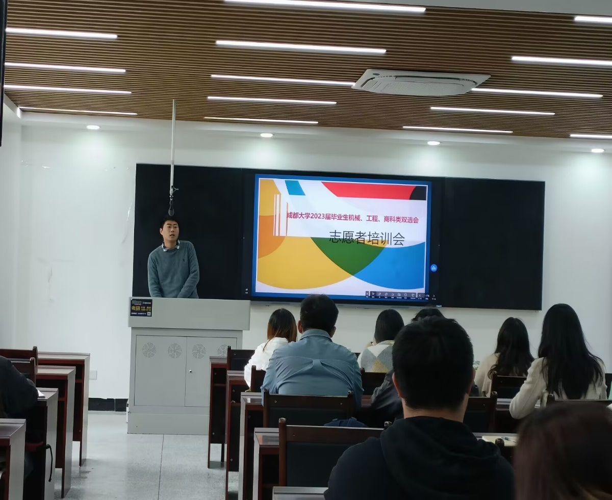 和机械工程学院、商学院于3月17日中午12点50分,在舒愉棉老师的带领下,到达3129教室联合举办了2023届春季双选会志愿者培训会。机械工程学院陈康老师、商学院以及全体双选会志愿者参加本次培训会议。