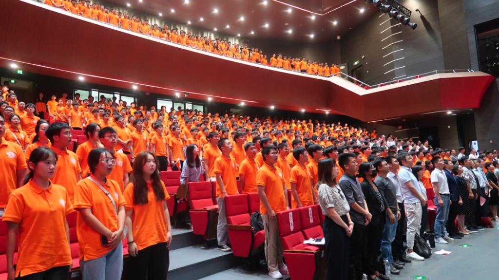 雄厚的教学科研实力。在勉励新生“生逢盛世,奋斗其时,厉兵秣马,蓄势待发”时,黄进书记对新生提出三点希望:一是要对学习保持热爱、对奋斗充满热情、对困难无所畏惧;二是要树立远大志向和抱负,自信自强、踔厉奋发;三是要练就本领,努力成长为“有理想、肯奋斗、担大任”的栋梁之才。