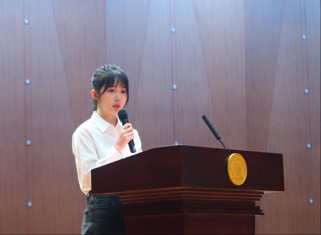 研究生新生代表陈柯杏深情回忆了去年难以忘怀的备考时光和跌宕起伏的心路历程,对即将到来的挑战和机遇充满热情和期待。她讲到,作为研究生,深知自己肩负的重要使命,希望同学们更加珍惜这段学习时光,培养良好的学术能力和学习习惯,锤炼坚韧的性格,锻炼综合素质,在未来的人生道路上更加充实和出色。