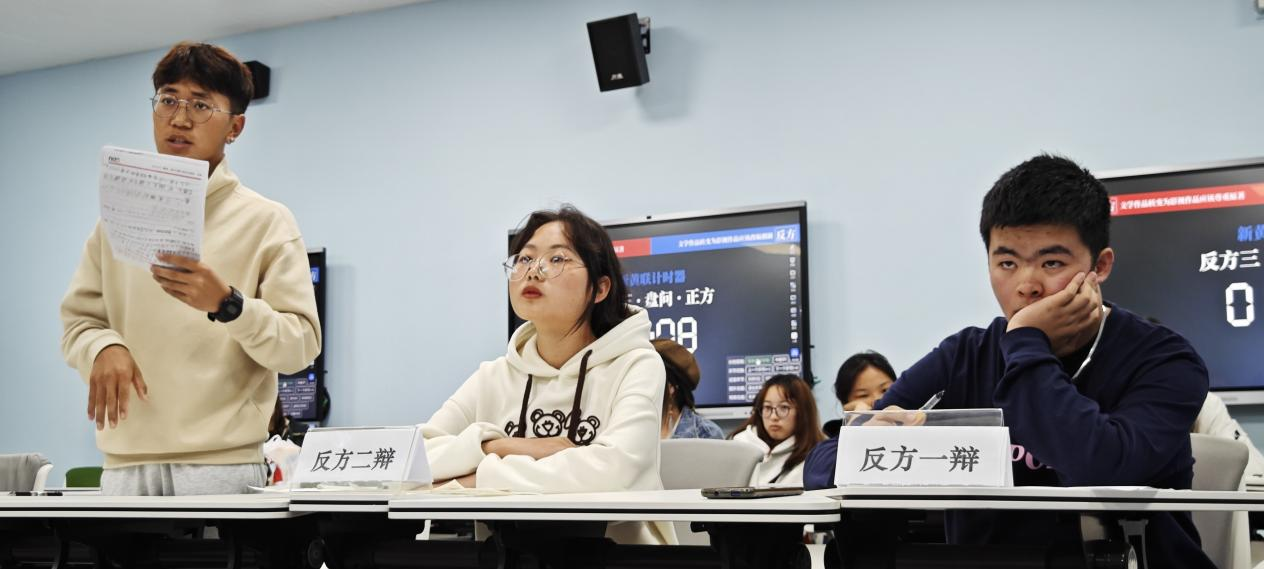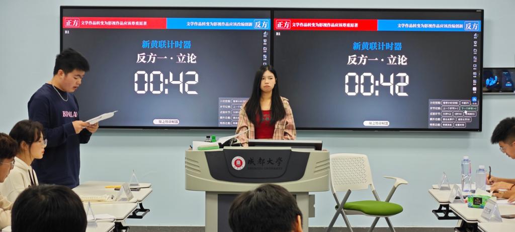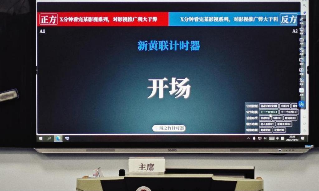 正方23级环工2班与反方23级建筑2班就“文学作品转化为影视作品应该尊重原著/改变创新”与正方23级环工1班与反方土木23级6班就“X分钟看完某影视系列对影视推广利大于弊/弊大于利”分别于13215与13219教室展开了激情辩论。