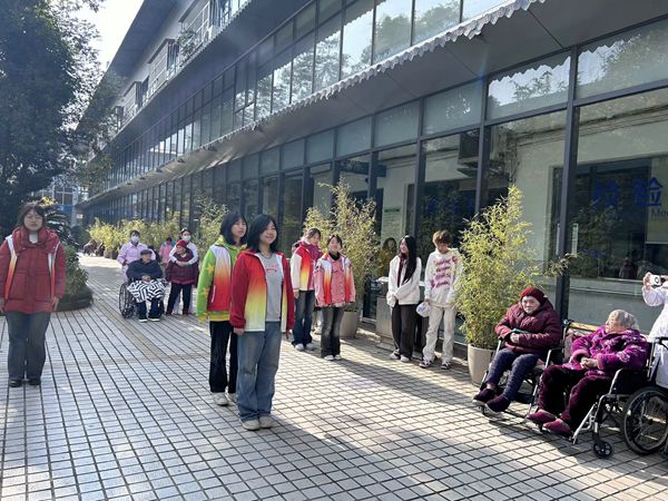 、音乐与舞蹈学院、机械工程学院以及美术与设计学院联合组织了一场特别的敬老活动。来自四个学院的志愿者们齐聚成都市老年康疗院,为老人们带去了精心准备的才艺表演和温馨陪伴。