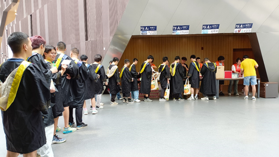 临近12时,毕业生们陆陆续续来到活动现场,大家手持写满寄语的明信片,从A1“检票口”有序排队而入,将明信片亲手投入邮筒,领取“离校车票”,刮开车票的“座位”兑换相应奖品。现场学生如织,时而爆发出阵阵欢笑,离别的情绪被冲淡,充满了欢乐的气息。