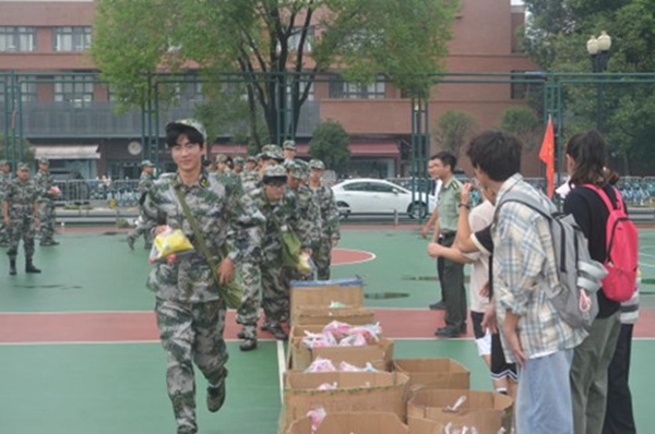 当同学们在烈日当空下勤奋训练时,在灼灼烈日下挥洒汗水时,学校的各领导密切关注学生的身体安全,在雨天时暂停训练,在烈日暴晒时暂停训练。学院的各位领导也从未停止关心学生们,今天在烈日下应急管理学院的田东书记在军训期间为学生们送去可口的饮料解渴,关心学生们的身体健康,告诉同学们累可以,苦可以,但是要有不怕累不怕苦的精神。一句句亲切的问候如同烈日下吹来的丝丝凉风,是烈日下的凉意,更是心底里的阵阵暖意,温暖着每一位应急管理学院的学生。
