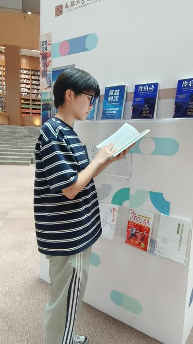 彭思宇在大一期间借阅了9本图书,借阅偏好为自然科学类和悬疑类。在阅读不同书籍的时候,她有着不同的感受。自然科学类图书有着严谨的语言和丰富的图片,在感受自然的奥秘和了解科学的原理的同时,也激发了对科学的热爱和探索的欲望。自然界的多样性和复杂性的面纱被层层揭开,科学的魅力和无限可能在此过程中也展现的淋漓尽致;悬疑类图书常常充满了未知和谜团,每个环节都埋下了疑点和伏笔,让人在阅读的过程中充满了期待和紧张。她经常猜测和推测故事的结局,而不断涌现的新线索和情节转折有时又令人大跌眼镜。正是这种反差感带来的兴奋和惊喜,让她越来越着迷于此图书类型。两种类型的书籍相互补充,使她在知识获取和思维训练上得到了双重收获,同时通过分享书中的一个个故事,不仅增加了室友们对自然现象和科学原理的了解,促进相互间的交流和互动,还缓解了学习压力,让寝室生活变得轻松愉快。