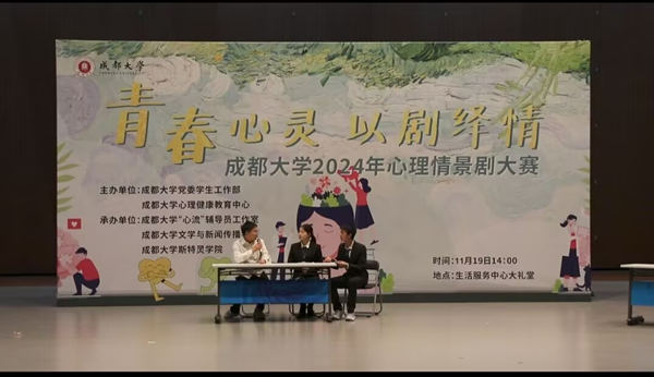 学生心理健康中心主办的心理情景剧大赛在学校生活服务中心大礼堂圆满落幕。本次大赛旨在通过生动、形象的情景剧表演,展现大学生在日常学习、生活中的心理困惑与成长历程,提升大学生的心理健康意识,促进校园心理文化建设。