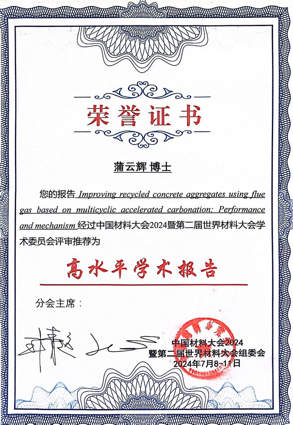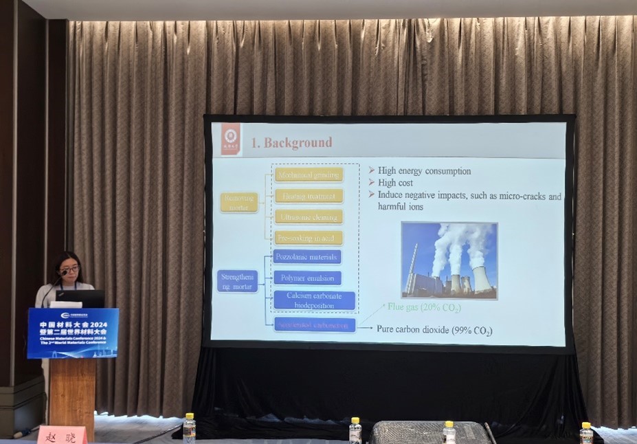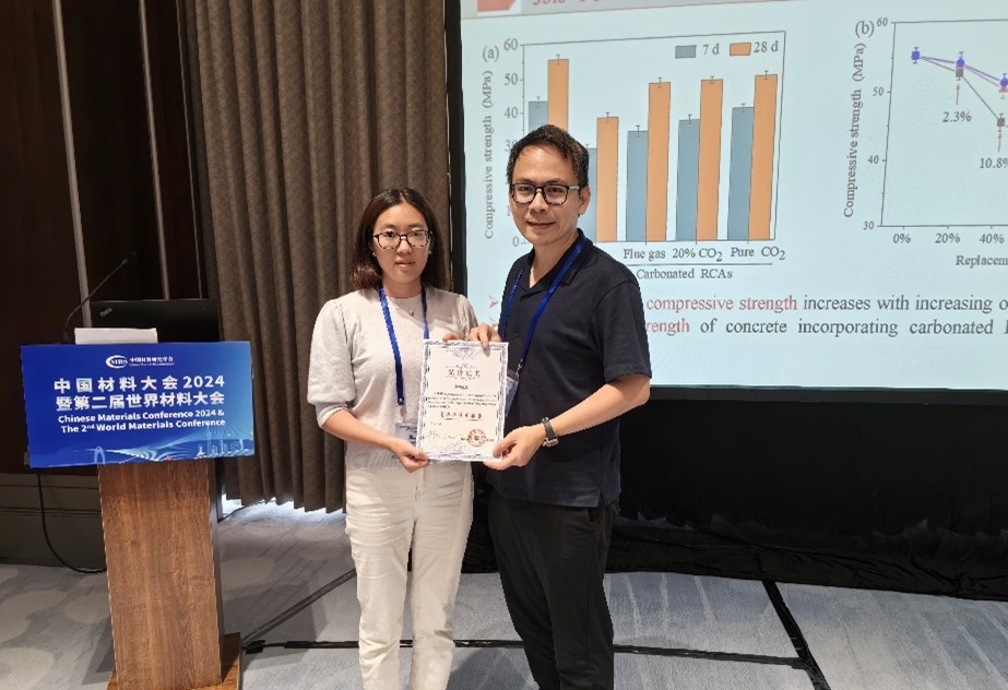 会议中,学院工程管理系蒲云辉副教授作题为“Improving recycled concrete aggregates using flue gas based on multicyclic accelerated carbonation: Performance and mechanisms”的报告。蒲云辉基于再生混凝土骨料的性能普遍偏差,且水泥制备过程中排放大量烟气的现状。提出利用水泥厂排放的烟气循环加压加速碳化再生混凝土骨料。研究发现烟气可显著提高再生混凝土骨料的性能并永久封存二氧化碳,其碳化效果与纯二氧化碳的效果相当。该研究对固废(建筑垃圾)和气废(CO2)的资源化利用提供指导,助力于建筑业早日实现碳达峰碳中和目标。