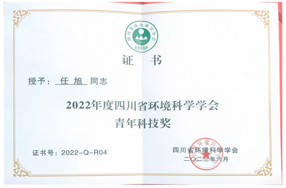 教师任旭副研究员被授予2022年度四川省环境科学学会青年科技奖。
