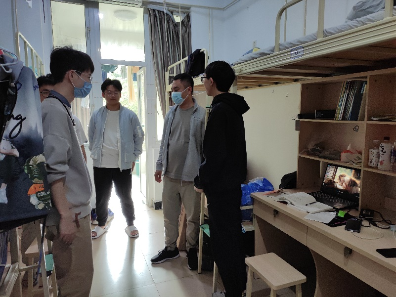 在走访的过程中,老师们亲切地与同学们打招呼,并询问同学们家乡是哪里,到校后的衣食住行、生活是否习惯等方面的问题,鼓励大家积极与老师、学长学姐们多多沟通交流,做好大学期间的人生规划,每一年、每一学期都要有自己的目标,并要朝着这个目标去努力、去奋斗,为自己的大学生活添彩,为自己的人生润色。全体老师特别提醒同学们注意寝室用电安全,提高安全防范能力,注意防火防盗防诈骗,做好防疫措施。同学们纷纷表示正在积极地适应大学生活,一定不会虚度光阴,倍加珍惜在校学习时光。