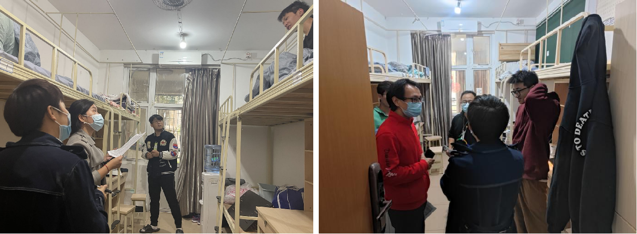 10月13日,学院环境工程系主任曾丽、环境工程22级班主任杨振东、高晓斐以及班导师唐嘉陵前往新生宿舍看望慰问,与新同学亲切交流,进行慰问,并给予学业和生活指导。