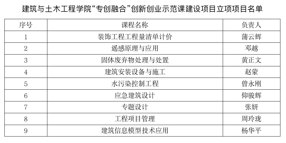 关于“专创融合”创新创业示范课程建设项目拟立项名单的公示