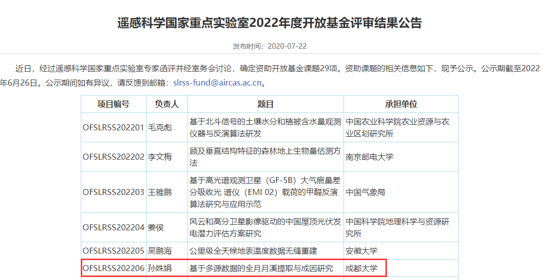 测绘工程系孙姝娟博士申报的《基于多源数据的全月月溪提取与成因研究》课题获得遥感科学国家重点实验室2022年度开放基金资助。