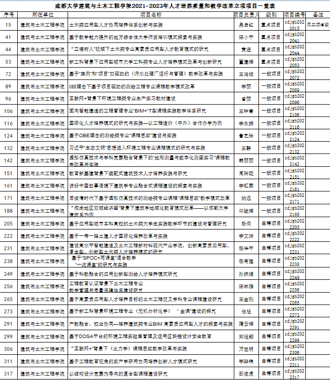 根据《关于申报2021年校级人才培养质量和教学改革项目暨推荐四川省2021-2023年高等教育人才培养质量和教学改革项目的通知》(成大教〔2021〕122号)文件精神,经个人申报、学院推荐、专家评审、校内公示、学校审定等程序,成人视频