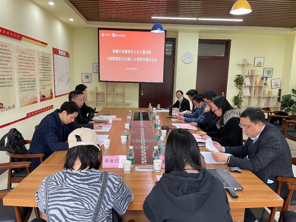 2022年3月25日下午,学院组织召开工程管理专业、工程造价专业以及工程造价(中韩)专业人才培养方案专家论证会。本次论证会邀请的校外专家有:四川省造价工程师协会会长陶学明教授,成都理工大学环境与土木工程学院副院长陈臻林教授、开元数智工程咨询集团有限公司副总裁余睿。会议由学院副院长王静主持。