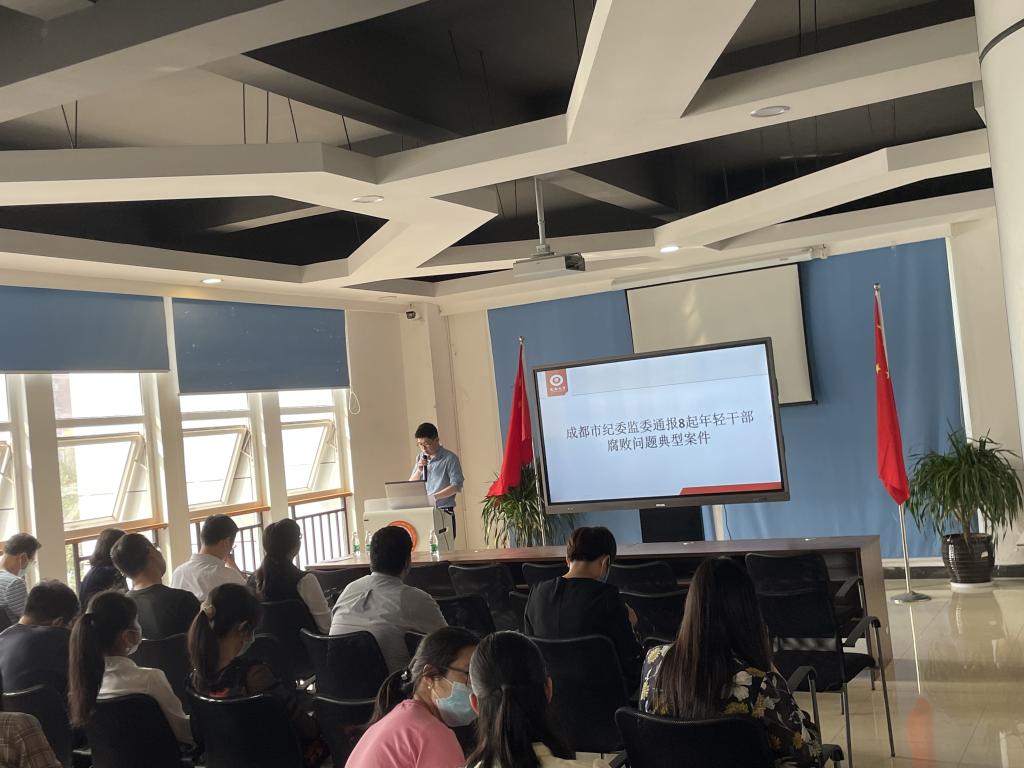 召开成都市纪委通报的8起年轻干部腐败问题典型案件警示教育会,学院领导班子,各系室主任及学院青年教师参加会议,会议由纪委书记董建辉主持。