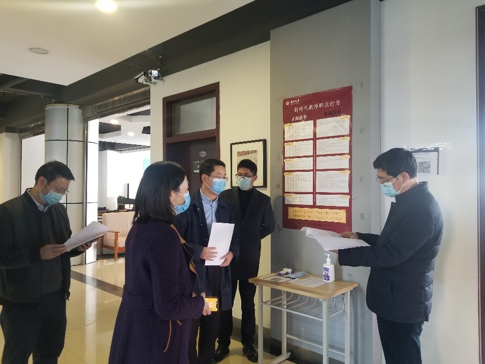 唐毅谦一行走访了建工楼党政办、教务办、学工办以及教师\学生办公室,实地视察学院的各项疫情防控管理工作,并听取学院负责人汇报了学院的防疫措施、全院师生的健康排查和管理情况。唐毅谦指出当前疫情形势严峻,要严格落实各级疫情防控要求,保障师生健康安全,同时要做好防控预案,加大宣传力度,确保学院各项工作平稳有序进行。