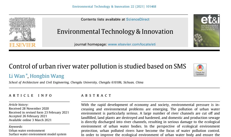 第一单位在SCI三区期刊Environmental Technology & Innovation上发表题为“Control of urban river water pollution is studied based on SMS”的研究成果。