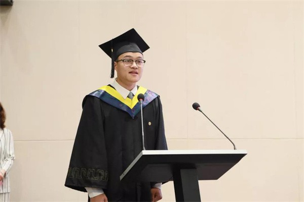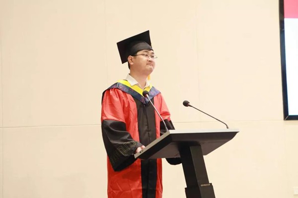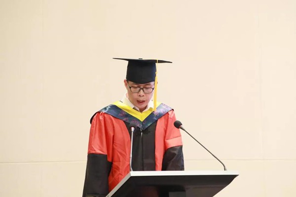 典礼第五项,优秀毕业生代表、土木工程专业黎朋同学发言。他结合自己四年大学生活,深情地表达了对母校的不舍及学院老师的感谢之情,同时也指出未来我们建工学子应积极发扬先辈精神,为祖国基础建设贡献一份力量。