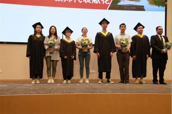 紧接着,毕业生代表为班主任、班导师及教师代表敬献鲜花,感谢他们四年来的悉心教导与关怀。
