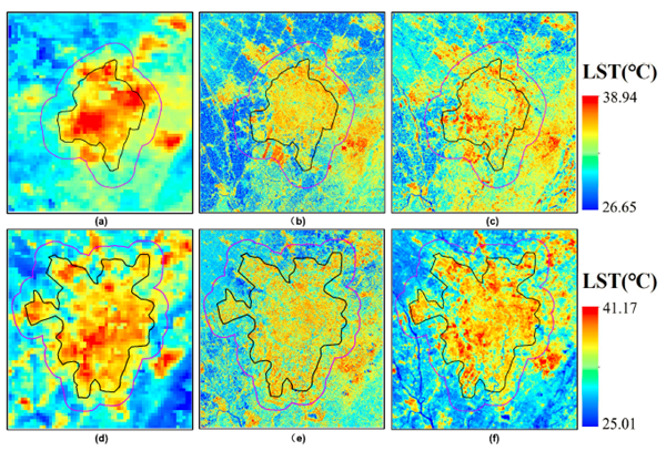该研究成果针对成都市多云多雨不利于地表热岛效应遥感监测的问题,基于时空融合模型和机器学习算法,构建了高时空分辨率地表温度数据集,有效开展了成都市2009~2018年地表热岛效应高精度遥感监测。