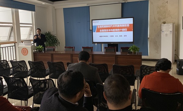 教务处处长叶安胜教授在建工楼二楼会议厅为全院教职工开展了一堂题为“全面把握新时代本科教育新形势,全面落实本科教育四个回归”的精彩讲座。
