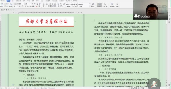 发展规划编写工作方案》的具体时间节点要求,凝心聚力,精心付出,有序推进学院发展规划编制工作。同时,他安排部署了下一步组织全院教职工、用人单位、杰出校友、在校生的线上研讨工作。