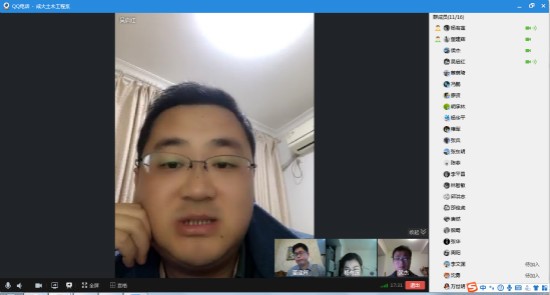 会上,首先对日常线上教学进行讨论,发现普遍存在由于网络条件差、或硬件实施等原因导致线上教学效果差的问题。与会老师都积极分享在过去四周线上教学积累的经验,总结得出在直播教学时可以采用录屏并及时上传的方式,可供学生反复学习。然后,所有老师按专业方向分享了毕业设计的最新进展情况,与以往面对面指导相比,线上指导学生进度较难把控,大部分学生进度存在比原计划稍滞后的情况,老师们相应采取了各种积极措施,如定制时间节点、增加答疑频率、打电话一对一交流等方式。在教师们的努力下,毕业设计总体进度虽有滞后,但处于可控范围内。同时,董建辉老师对目前土木系学生就业情况进行通报,由于疫情影响给就业工作带来了一定困难,董建辉老师号召各位老师利用自身社会资源多为学生创造就业机会,老师们纷纷表示赞同。此外,学院科研秘书蔡萌琦老师,对今年自然科学基金的申报相关信息进行了讲解,得到了老师们的积极响应。