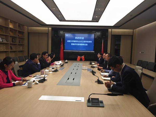 公司负责人首先带领杨平同志一行参观公司办公环境并介绍公司概况,并与就职于该公司的成大学子进行交流。随后,公司总裁潘敏组织公司高层领导与我校教师团队就高校与企业间的“产教融合、高校人才培养、校企合作”进行深入交流。会间潘总等人提出以下建议:(1)重视工程管理专业综合能力的培养,特别是沟通协调能力的培养。(2)造价专业学生的培养,不能再局限于传统的算量计价,而应重视全过程造价管理,尤其是前期的造价管理。(3)人才培养方案的设置需考虑课程与职业方向的引导。会后双方还就进步一步的合作达成相关协议。