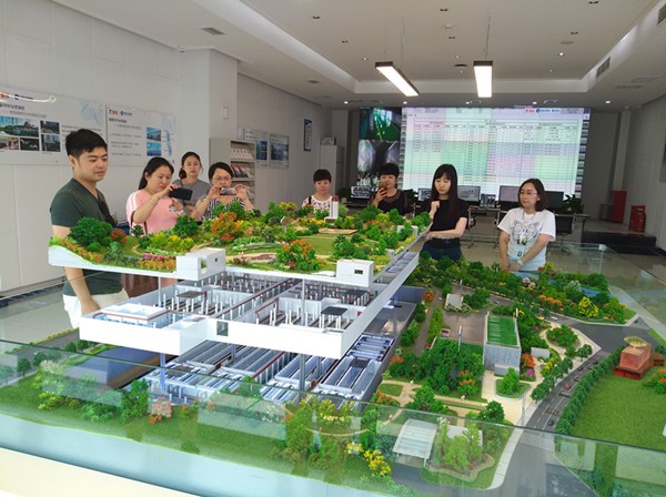 老师们参观了水环境科普馆和污水处理厂厂区。科普馆造型现代,以水资源、水污染和水再生为主线,分生命之源、城市之殇、水之新生、生生不息、节水护水五个环节,利用复合幻象、内投影、精准投影、镜面屏、雷达触控等科技手段,生动地讲述了水环境治理及保护的重要性。