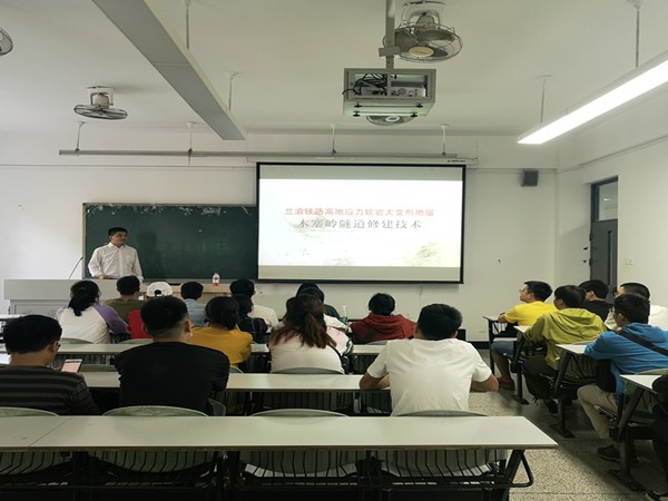 首先,于维刚老师为同学们展示了兰渝铁路木寨岭隧道修建技术的视频资料,介绍了高地应力软岩大变形地层环境下对隧道施工的影响及处理措施。