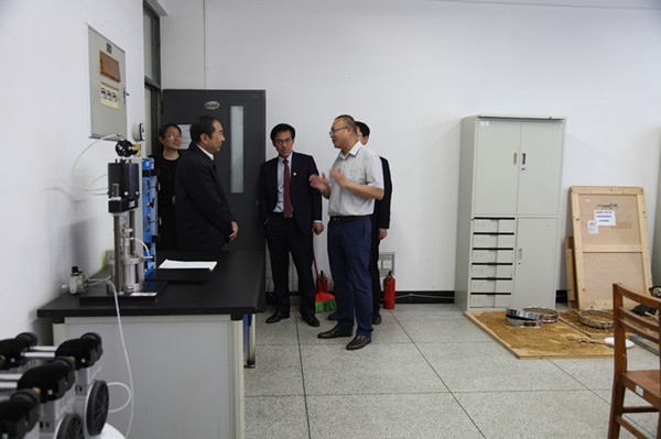 在学院班子成员的陪同下,阎开印查看了学院与南方测绘共建的全息虚拟科研实验中心并戴上眼镜进行了现场体验,参观了学院教学资料室、三室一厅和教学实验中心,并与非饱和土与特殊土力学实验室张兵老师进行了交流。阎开印说,非饱和土的研究有着积极意义,龙泉山脉的膨胀土就是其重要的研究对象,希望学院能持续深入研究下去,以科学研究带动地方服务,做出成效。