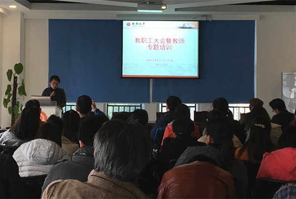组织全院教师在建工楼二楼大会议室进行专题培训,学院党委书记李行主持培训会。
