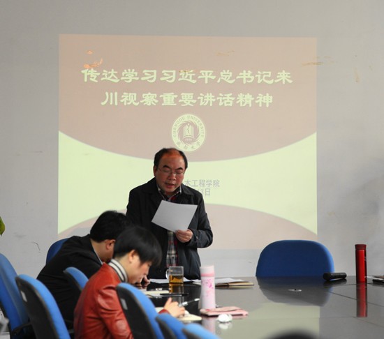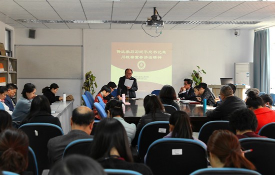 在5103召开全院教职工大会,专题学习习近平总书记来川视察调研期间重要指示。学院党委书记徐涛主持会议并传达了习近平总书记来川视察重要讲话精神,全院教职工参加了学习会。
