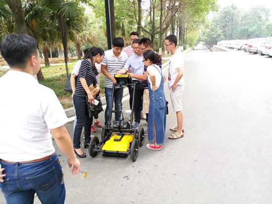 下午14:00,中翰公司代表进行了探地雷达展示,并对学校新民路到明德东路部分路段的管线进行了探测。