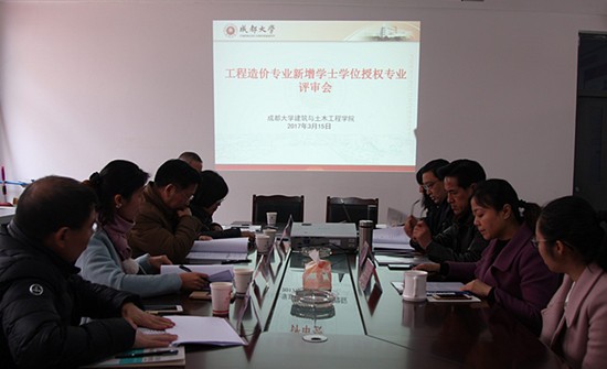 工程造价新增学士学位授权专业评审会在学院会议室5110召开,学院院长李文渊、分管教学的副院长王锡琴、专业负责人,以及校内、校外5名评审专家共同参会。