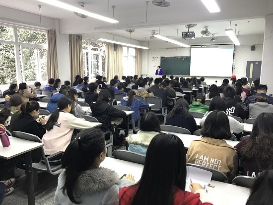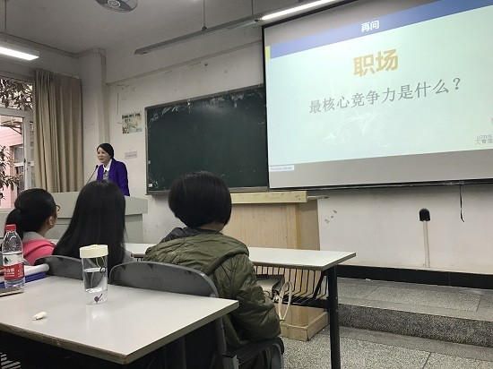 于2016年11月9日邀请艾青莲时尚美学院潘文蓉潘院长在4115为学生开展“职业素养提升、职场面试礼仪、职场生存沟通技巧”讲座。