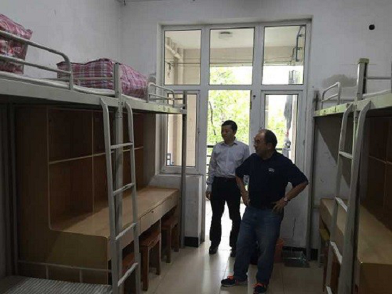 徐书记与余书记对学生床位、桌椅、衣柜等硬件设施进行了检查,查看水电系统是否存在隐患,楼道消防设施是否齐全,宿舍门和阳台门锁有无损坏。走访完毕后徐书记与余书记又与建工学工办全体辅导员与新生班主任老师进行了沟通,在迎新工作期间,对新生做好宿舍安全教育,不要私拉乱接插线板,禁止使用大功率电器,保持与宿管人员、老师的沟通顺畅。