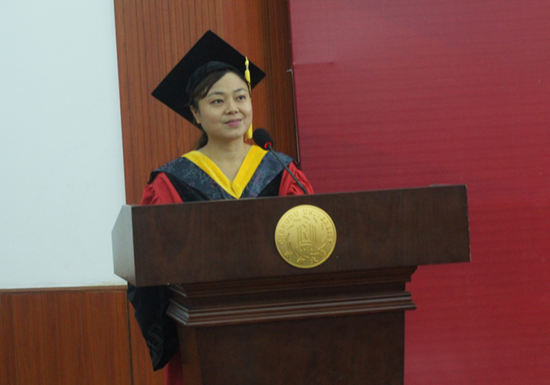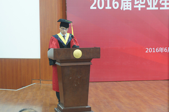 会议由党委副书记余阳燊主持,伴随着庄严而神圣的国歌,副书记余阳燊宣布2016届毕业生学位授予仪式正式开始。