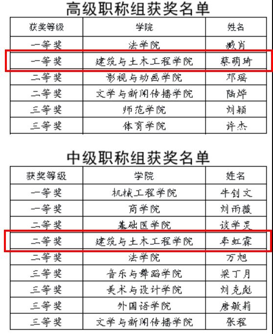 教师蔡萌琦、李虹霖在本届教师教学创新大赛中分获高级职称组一等奖和中级职称组二等奖。