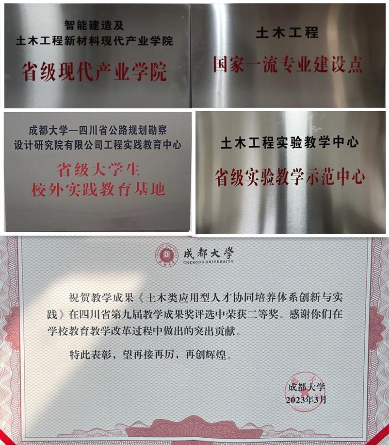 获得国家级一流本科专业建设点、省级大学生实践教育基地、现代产业学院、土木工程示范中心、省级教学成果奖等多项殊荣。