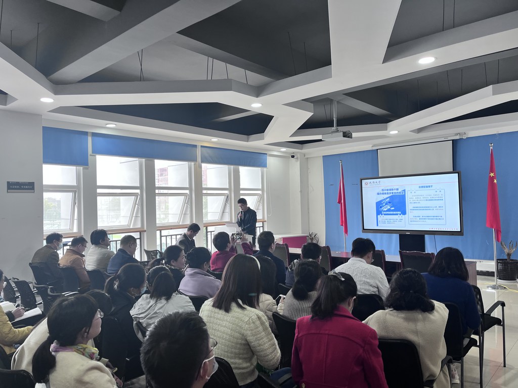 2023年3月28日,学院召开全员职工大会,学院纪委书记董建辉带领学院全体教师职工学习《四川省领导干部操办婚丧喜庆事宜的规定》。