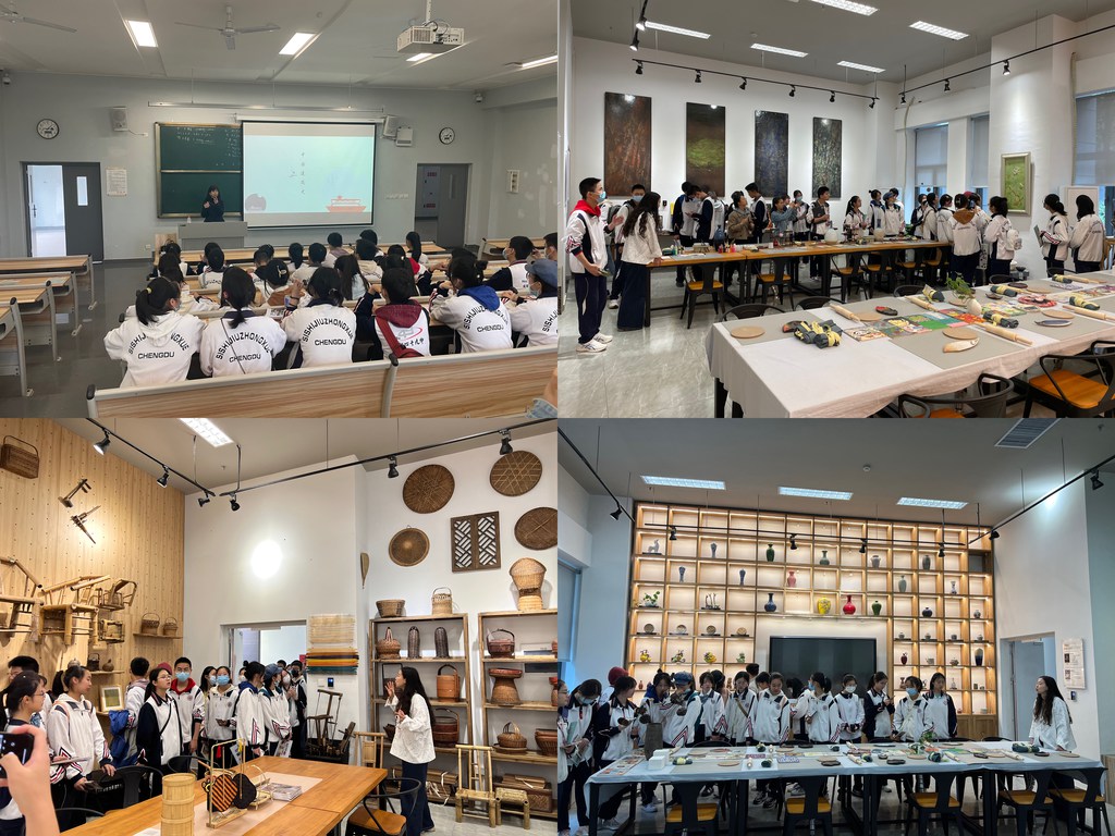 浓厚的文化氛围和良好的校园风貌。同时,在东盟艺术学院郑雨婷老师的带领下参观了中国-东盟艺术学院国际部、美术与设计学院传统工艺研究所、传统文化研修室和艺术展览,接受中华优秀传统文化的熏陶和艺术的洗礼。每到一处,同学们均被讲解和展品深深吸引,整个研学过程欢快又不失严谨,学生们连连称赞并不时合影留恋,大家纷纷表示收获满满,不虚此行。