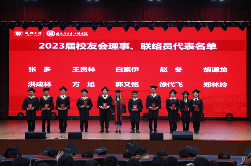 同时为积极开展校友联络工作,学院副院长董建辉教授宣读学院校友理事会理事、联络员聘任通知,学院副院长王静教授为学院2023届校友会理事、联络员颁发聘书。