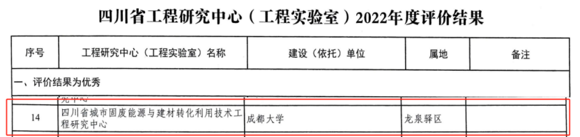 建设的四川省城市固废能源与建材转化利用技术工程研究中心(以下简称“固废研究中心”)评价结果为“优秀”,标志着固废研究中心在相关领域的研究实践和社会服务工作取得了显著成效。