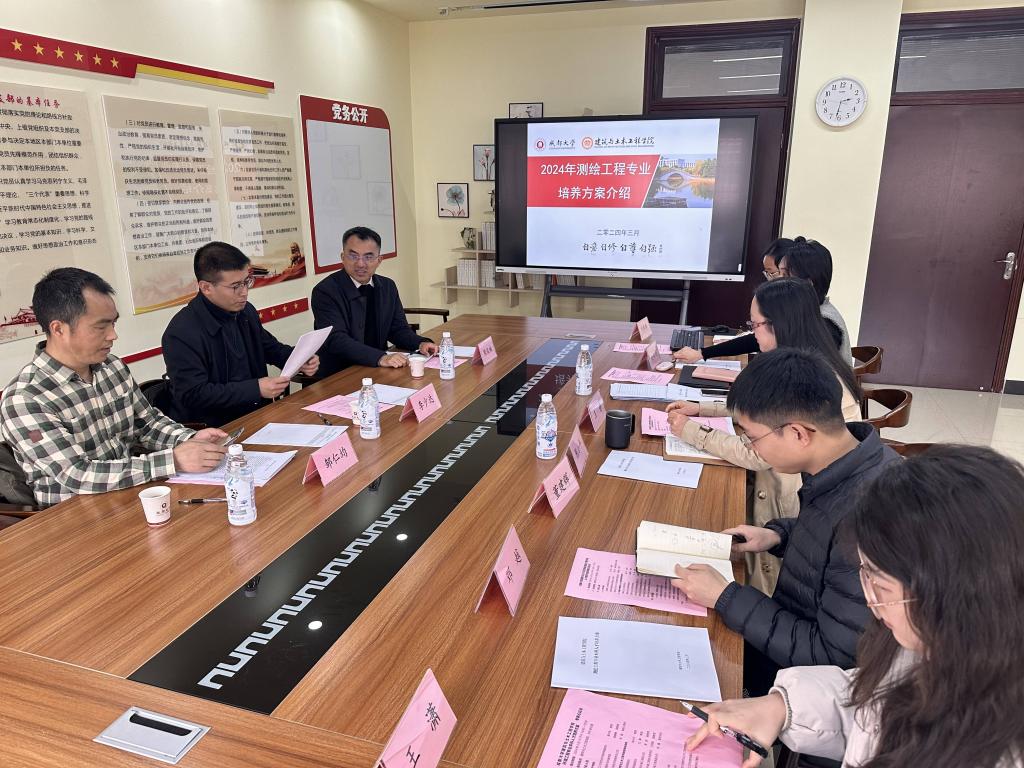 近年来的发展情况。测绘工程系主任刘璐璐具体就测绘工程专业本科人才培养方案的修订情况向各位专家做汇报,包括培养目标、课程设置、实践教学等方面。