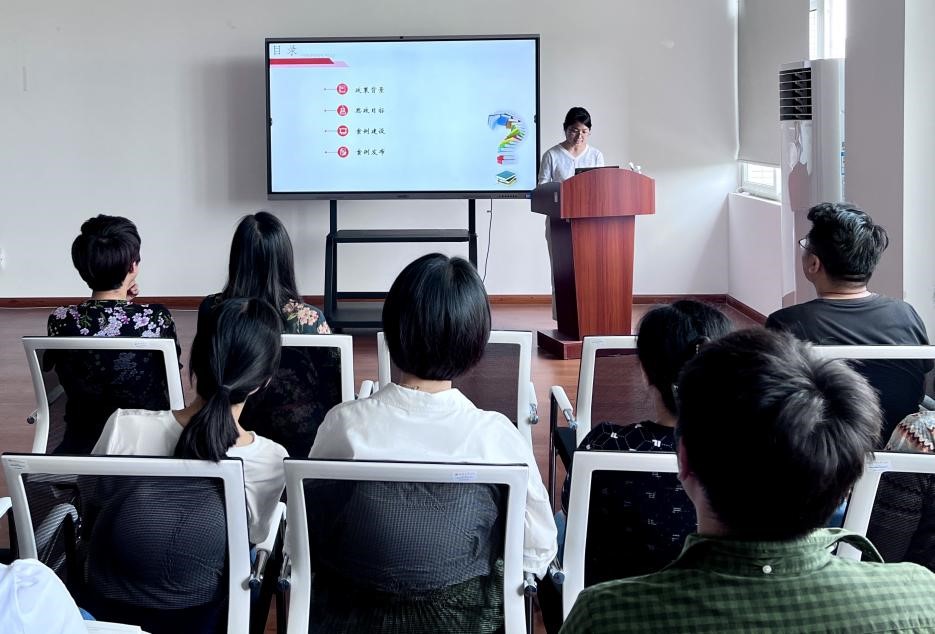 在建工楼306召开课程思政案例建设经验分享交流会。各专业骨干教师、一流课程负责老师参会,会议由学院副院长王静主持。