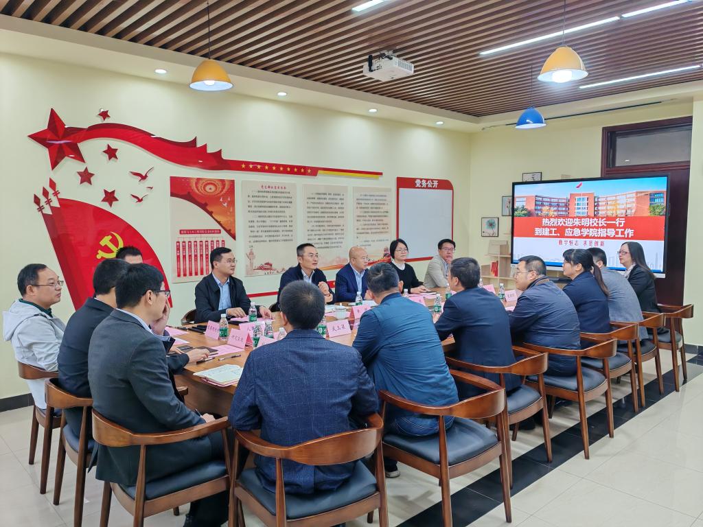 会前,朱明校长一行还听取了二号实训楼建设项目基本情况汇报,走访了解了学院教学档案管理、学生考研、学科竞赛准备的情况。